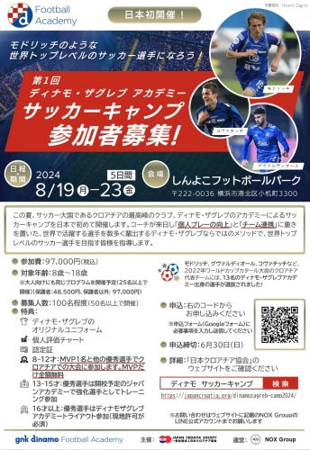 2024年8月19日〜23日、日本初!「第1回 ディナモ・ザグレブ アカデミー サッカーキャンプ」参加者募集中!